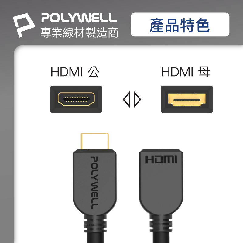 POLYWELL HDMI延長線 2.0版 公對母 15公分~3米 4K 60Hz HDMI 工程線 寶利威爾台灣現貨50公分|2米|3米|1米|15公分POLYWELL寶利威爾官方旗艦店