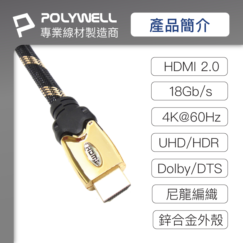 POLYWELL HDMI線 發燒線 2.0版 1米~10米 4K60Hz UHD HDMI 傳輸線 寶利威爾 台灣現貨1米|2米|3米|5米|8米|10米POLYWELL寶利威爾官方旗艦店