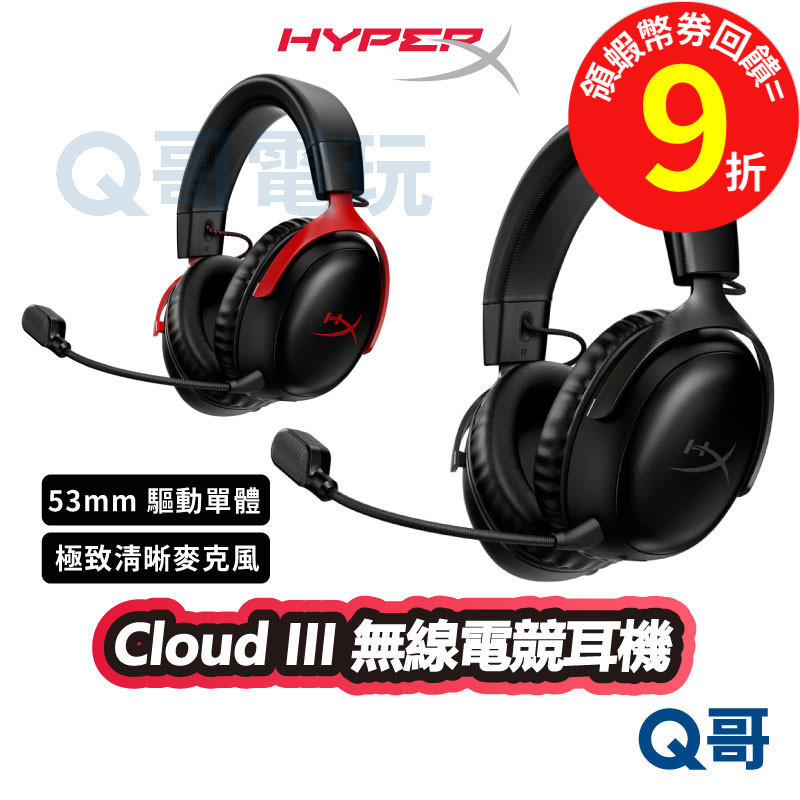 HyperX Cloud III【無線電競耳機】DTS X音效 耳罩式 耳機 耳麥 USB 適用 PS HPX011黑紅-福利品|黑|黑紅Q哥 電玩旗艦商城|Switch2 PS5 遊戲片 Xbox ptcg寶可夢