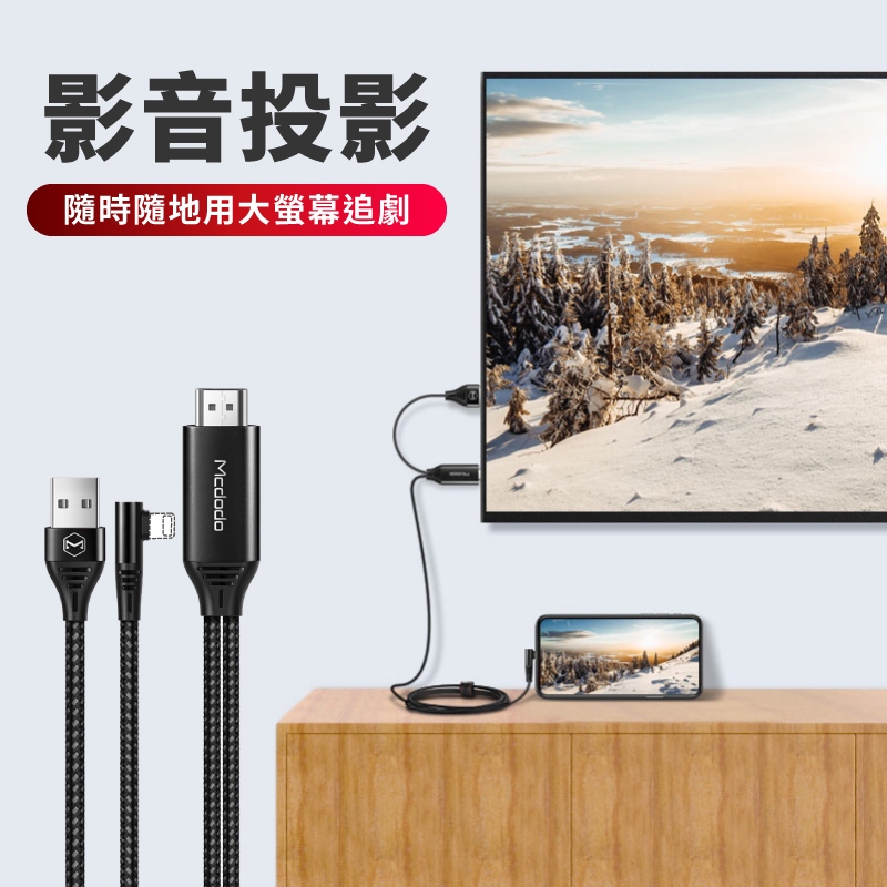 麥多多 光影系列 HDMI 傳輸線 USB 適用 蘋果 2M 編織線 轉接線 影音傳輸線 螢幕轉接線 電視線 MD104黑Q哥 旗艦商城|最專業的保護貼手機配件