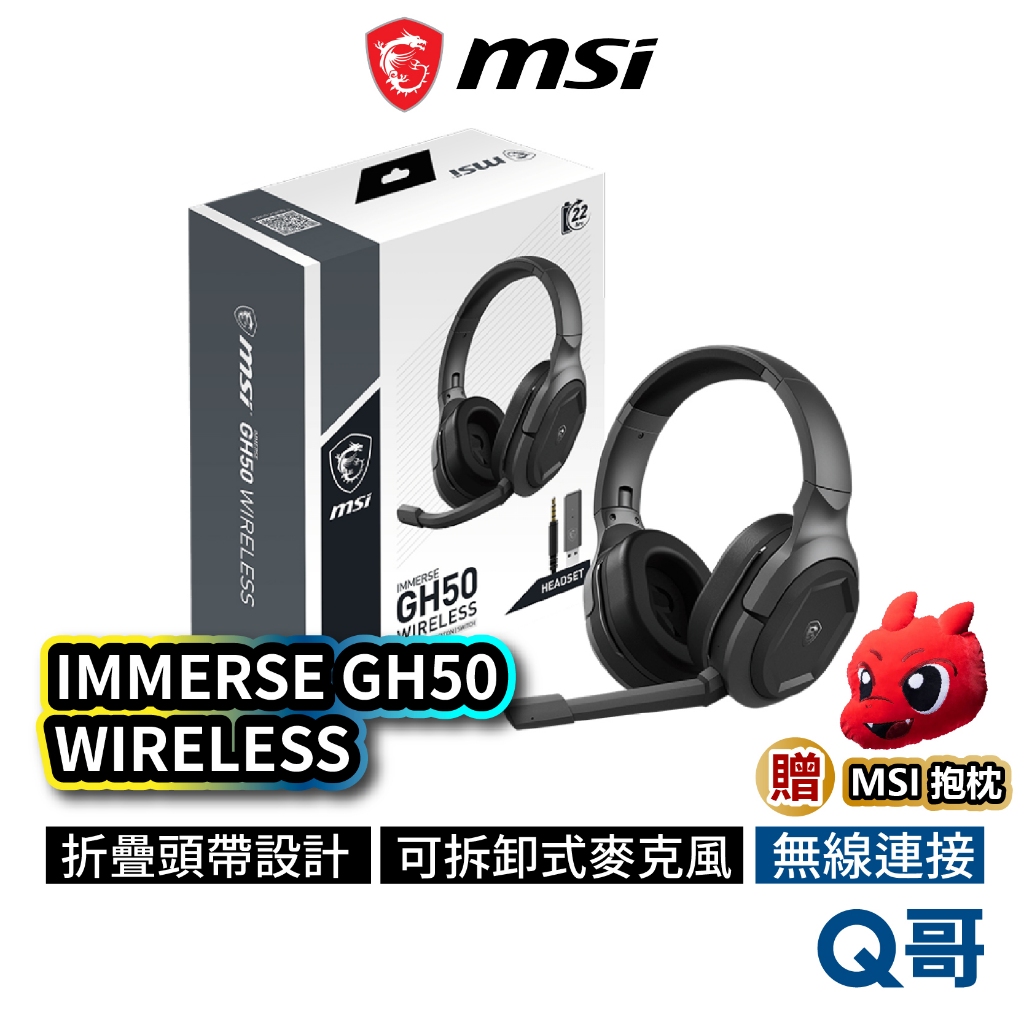 MSI IMMERSE GH50 WIRELESS 無線電競耳機 折疊耳機 可拆卸式耳機麥克風 MSI893IMMERSE GH50 WIRELESQ哥 3C資訊通訊生活旗艦館
