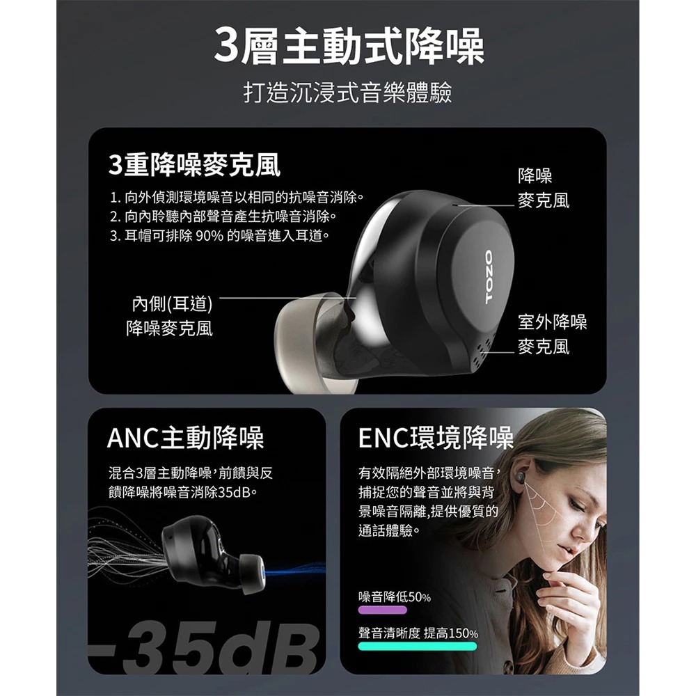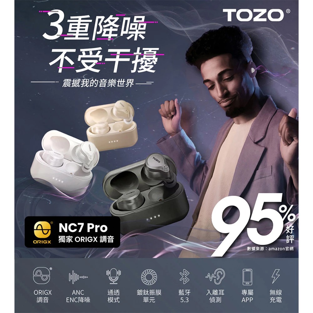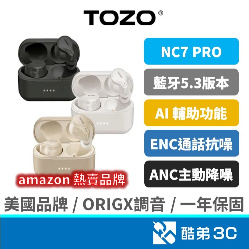 【亞馬遜熱賣】TOZO NC7 Pro AI輔助 ANC雙降噪 真無線 藍牙耳機 藍芽耳機 ORIGX獨家調音 公司貨黑|白|褐QD 酷弟3C