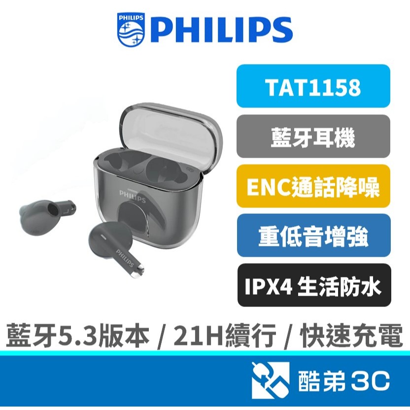 【免運】PHILIPS 飛利浦 無線藍牙耳機 AI通話降噪 ENC通話降噪 藍芽耳機 重低音增強 TAT1158 公司貨【免運】PHILIPS 飛利浦 無線藍牙耳機 AI通話降噪 ENC通話降噪 藍芽耳機 重低音增強 TAT1158 公司貨QD 酷弟3C