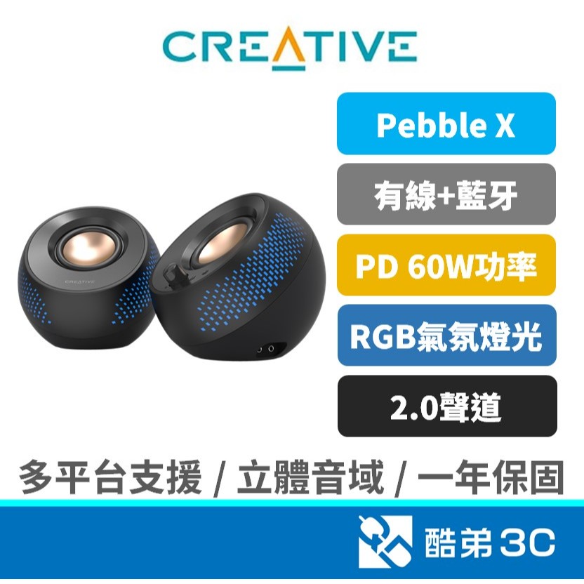 Creative Pebble X USB-C 2.0聲道RGB喇叭 電腦音響 藍牙喇叭 藍芽喇叭 音響|創新未來Creative Pebble X USB-C 2.0聲道RGB喇叭 電腦音響 藍牙喇叭 藍芽喇叭 音響|創新未來SpeakersQD 酷弟3C