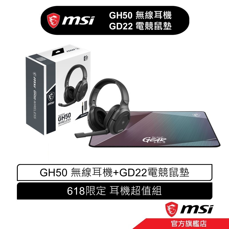 msi 微星 MSI GH50 Wireless 無線電競耳機 + GD22 彩虹膜滑鼠墊GH50 無線耳機+GD22鼠墊MSI微星品牌旗艦店