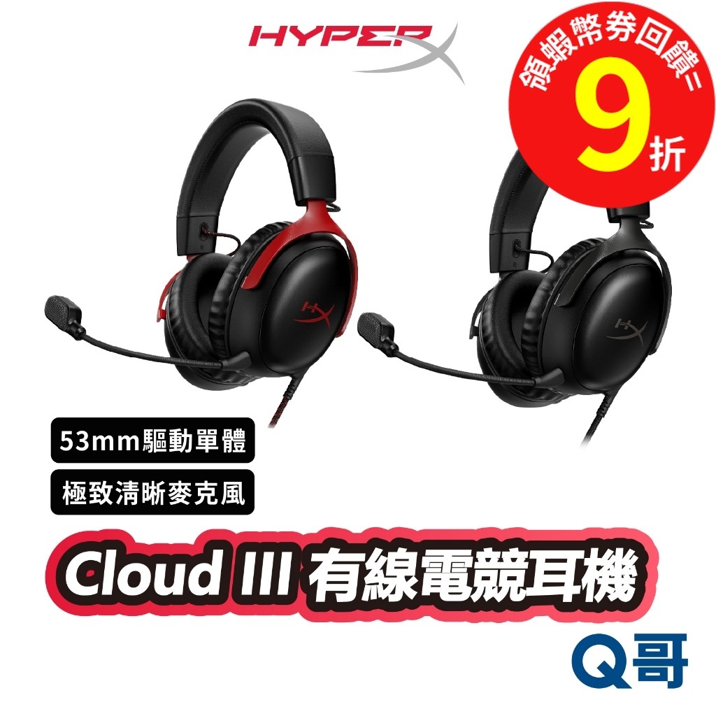 HyperX Cloud III【有線電競耳機】降噪 有線耳機 耳罩式 耳機 適用 PS Xbox PC HPX009黑色|黑紅色Q哥 電玩旗艦商城|Switch2 PS5 遊戲片 Xbox ptcg寶可夢