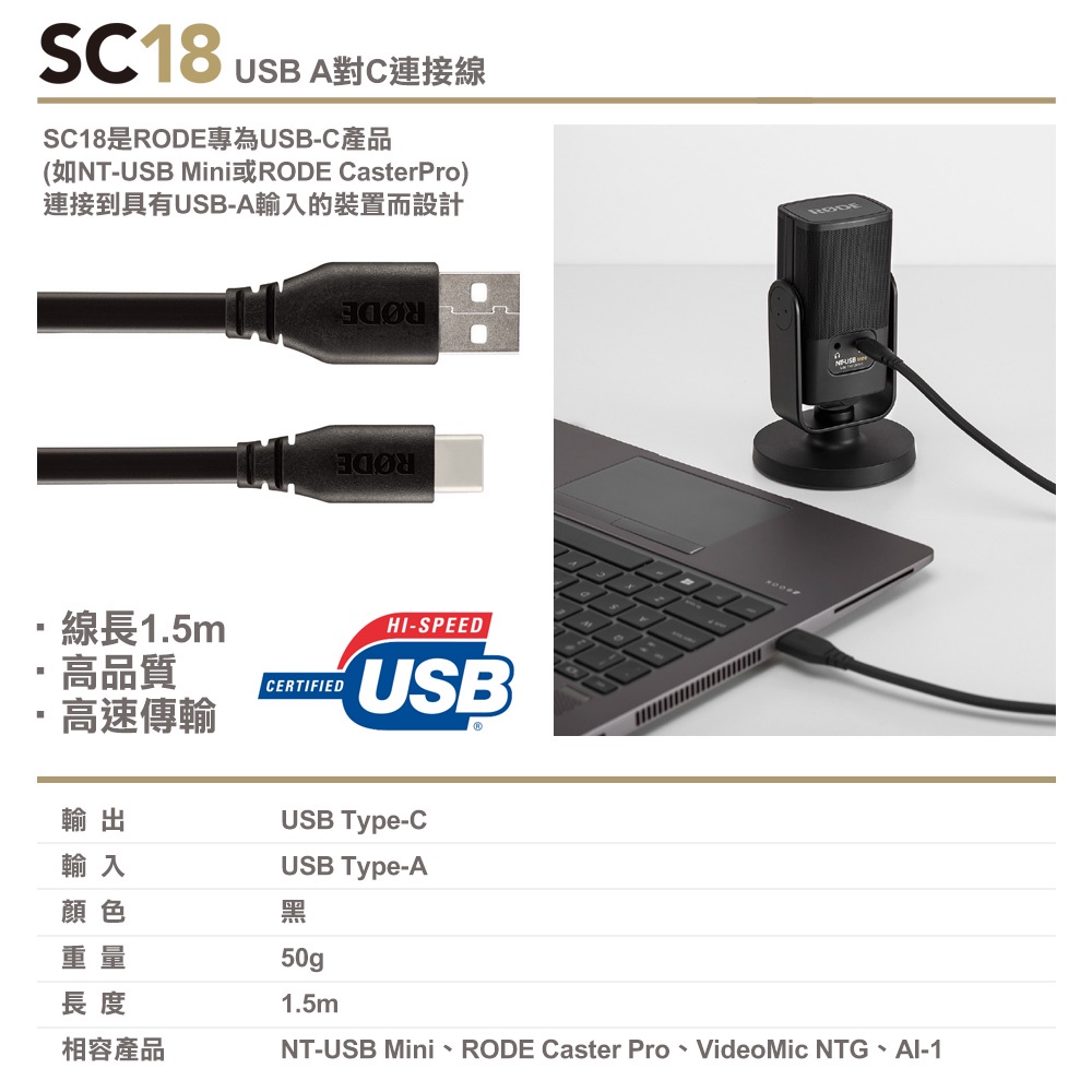 RODE|SC18 USB-C to USB-A 連接線 公司貨RODE|SC18 USB-C to USB-A 連接線 公司貨RODE 羅德 官方旗艦店