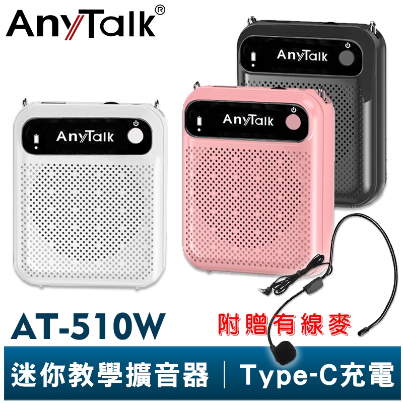 【AnyTalk】AT-510W 迷你教學擴音器 可拆換電池 小蜜蜂 擴音器 擴音喇叭 有線麥克風 教學 導遊 叫賣雪花白|櫻花粉|酷炫黑|加購 有線麥克風OthersROWA 樂華數位