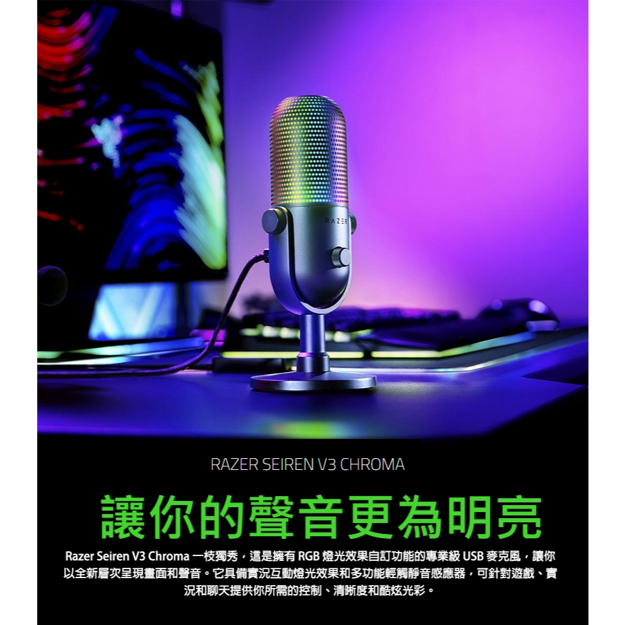 Razer 雷蛇 Seiren V3 Chroma 魔音海妖 幻彩版 電容麥克風 直播麥克風 電競麥克風 雷蛇麥克風白色|粉色|黑色Razer雷蛇|電競週邊館