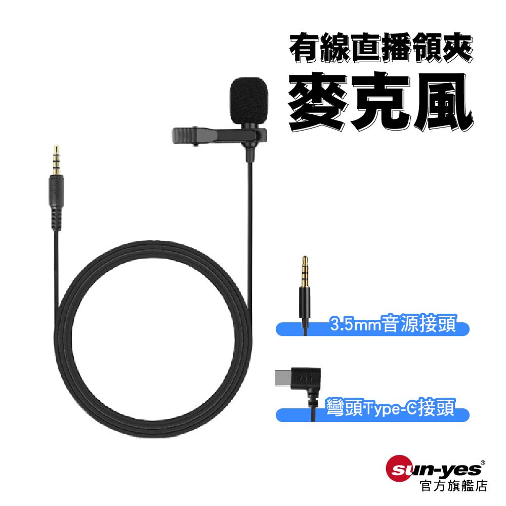 有線直播領夾麥克風|3.5mm音源/Type-C接頭|SY-MIC03|即插即用/適用直播上客會議等各種場合A款3.5mm音源接頭(二環)|B款3.5mm音源接頭(三環)|C款彎頭Type-C接頭SUNYES 官方旗艦店