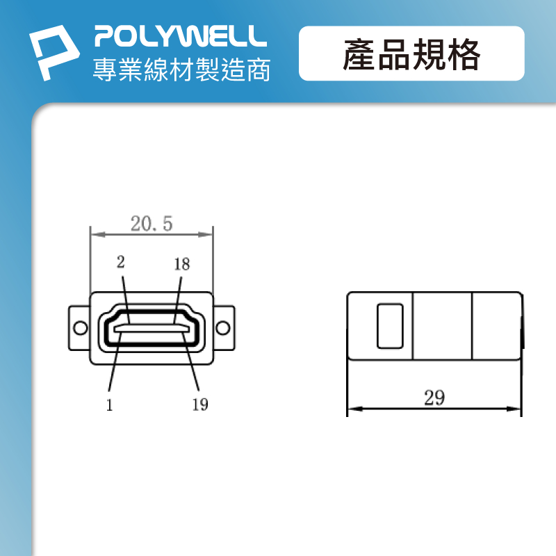 POLYWELL HDMI延長接頭 180度 HDMI插座 資訊盒插座 影音訊號插座 寶利威爾 台灣現貨HDMI母對母延長接頭 – 180度POLYWELL寶利威爾官方旗艦店