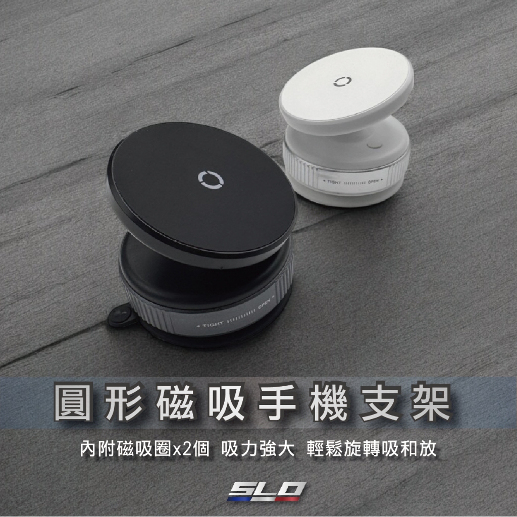 SLO【圓形磁吸手機支架】汽車手機支架 真空吸附磁吸支架 車用手機架 桌面磁吸支架 吸盤手機架 多角度可調 附磁吸圈圓形磁吸手機支架 黑/組|圓形磁吸手機支架 白/組Phone HoldersSLO 速辰汽機車精品旗艦館