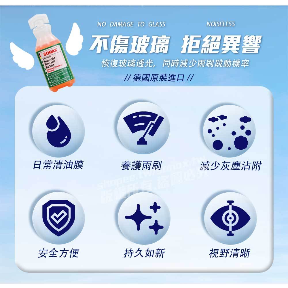SONAX 極潤雨刷精 汽車雨刷精 雨刷水 玻璃水 去油膜 雨刷精 汽車除油膜 汽車玻璃水 雨刷潤滑 防雨刷跳動限時特賣|單瓶|兩入組Glass Care & Water RepellentsSONAX 歐洲第一汽車鍍膜 中性洗車藥劑 棕櫚蠟 洗車精 汽車美容 台灣總代理