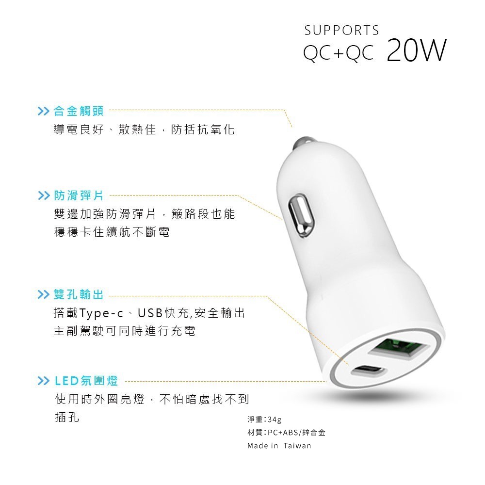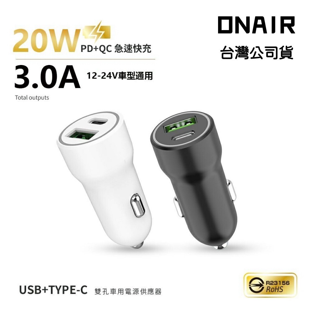 MCK-Q220 PD+QC車充 20W 極速車充 台灣製造 車充 充電器 快充 車用充電器 點煙器白色|黑色USB Chargers, FM & Bluetooth TransmittersONAIR 手機配件專賣店