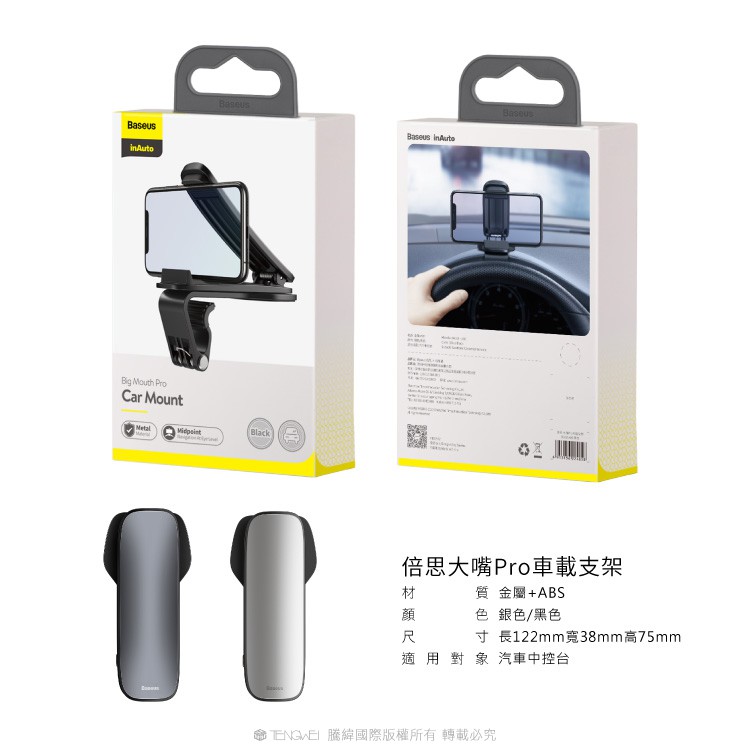 【Baseus倍思】大嘴Pro橫式車用儀表板手機架車用手機 橫式手機架 車載支架 車架黑色|銀色|包裝NG(隨機出貨)Phone HoldersNawies 手機配件 | 代理 倍思 / Lisen / amuok