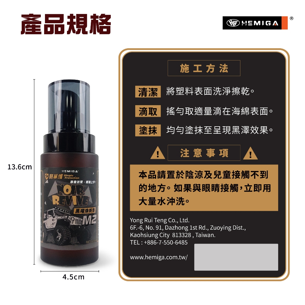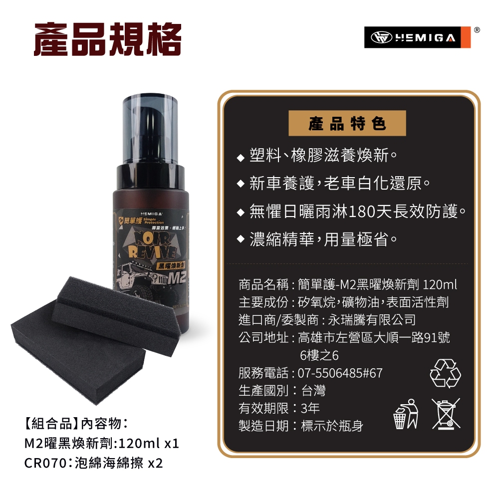 HEMIGA M2黑曜煥新劑 簡單護 機車 汽車 塑料還原劑 塑料煥新修護劑 增亮 保護HEMIGA M2黑曜煥新劑 簡單護 機車 汽車 塑料還原劑 塑料煥新修護劑 增亮 保護Wash & WaxesPLAY3C創意生活館