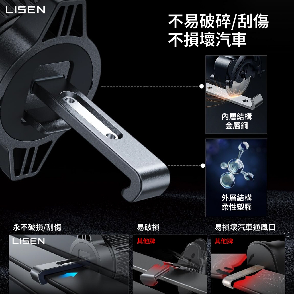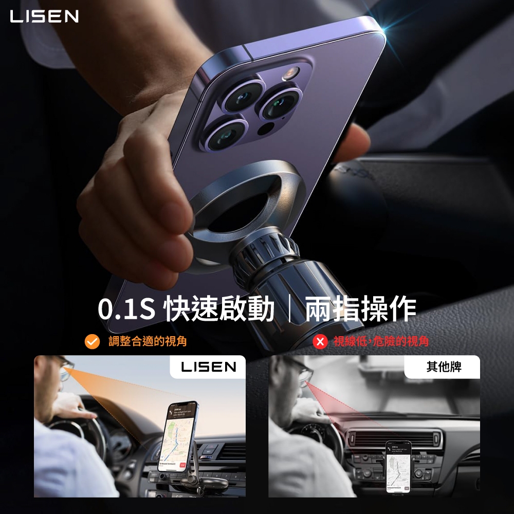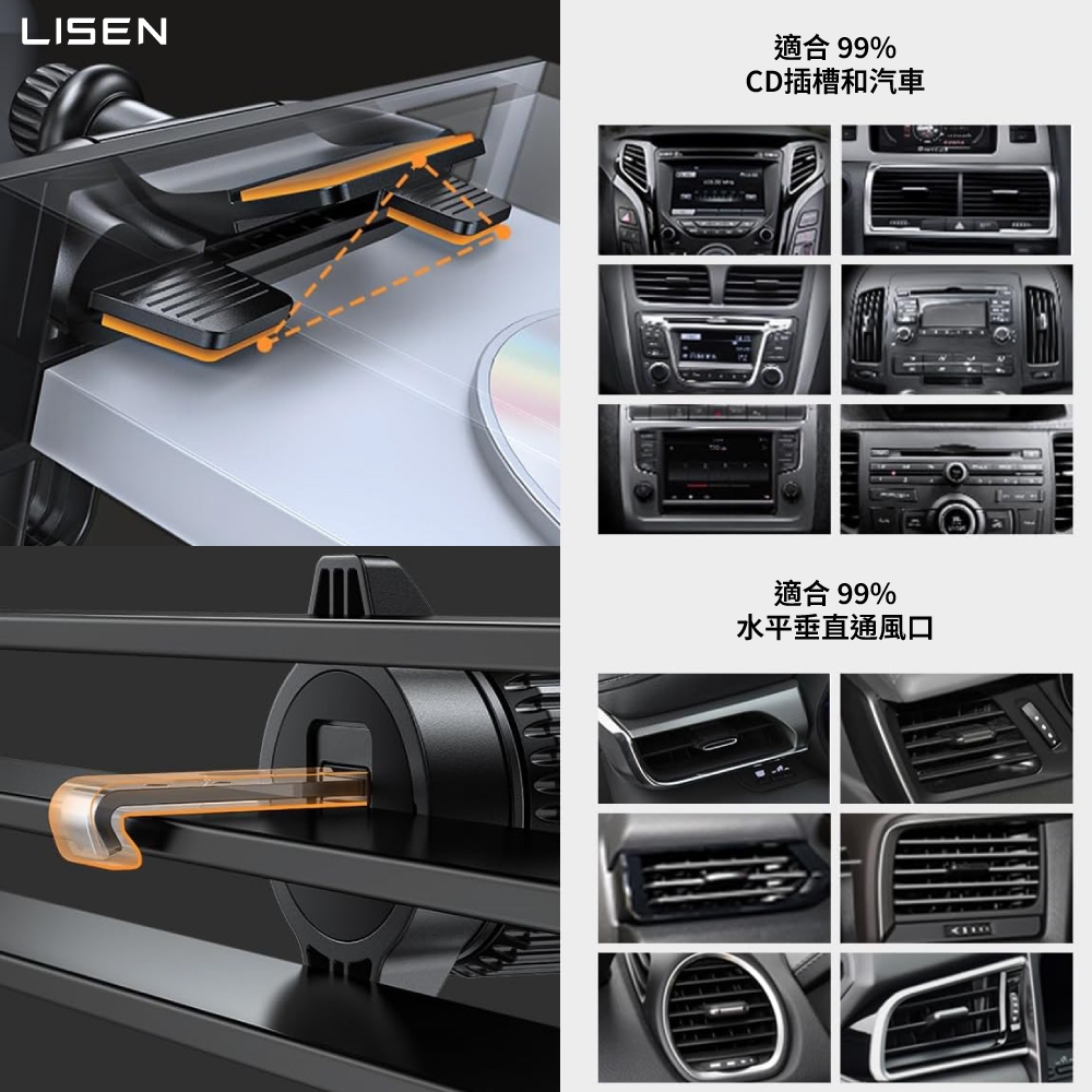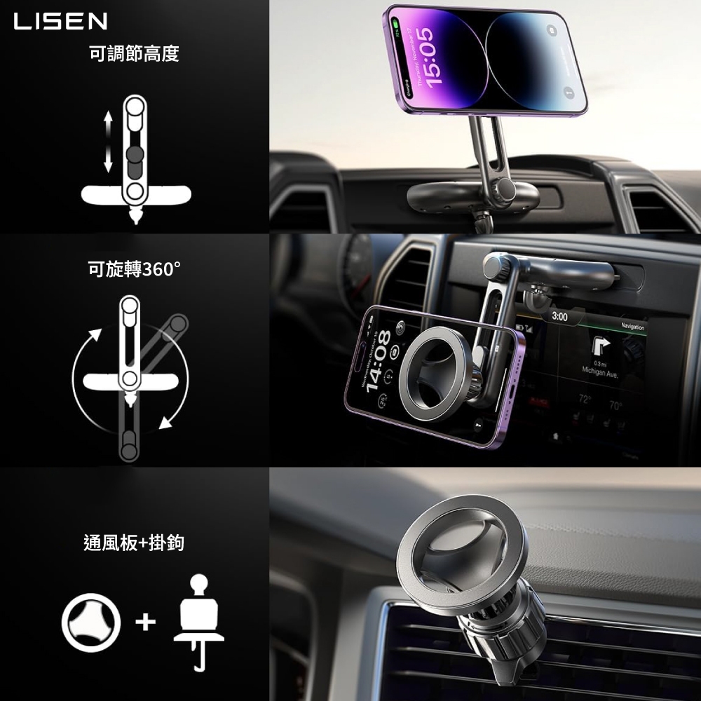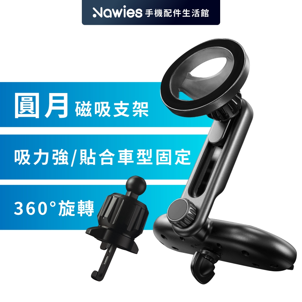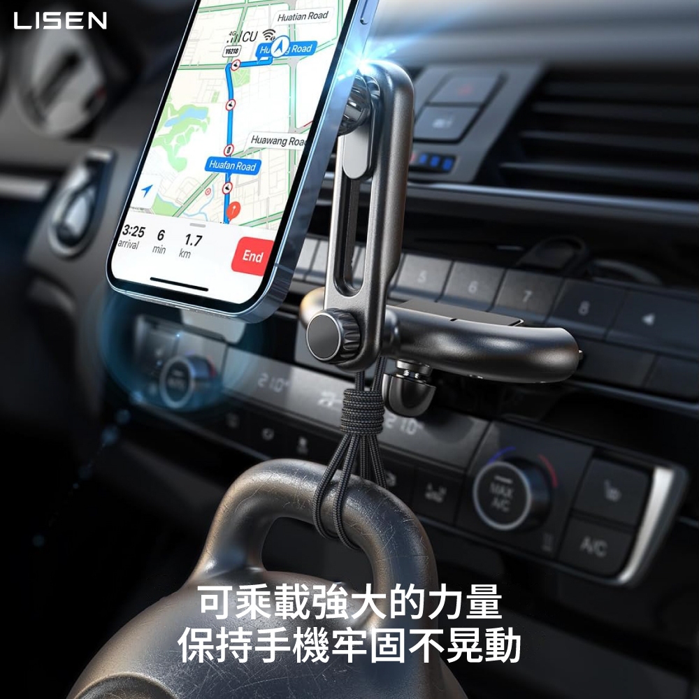 【Lisen】圓月MagSafe磁吸支架 出風口 CD口(附雙支架) 雙配件支架 出風口支架 手機支架 車用支架 車載黑色Phone HoldersNawies 手機配件 | 代理 倍思 / Lisen / amuok