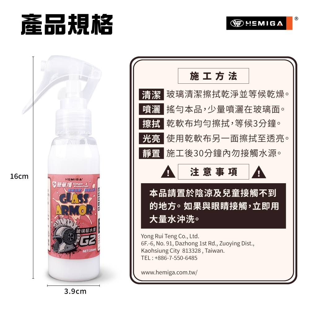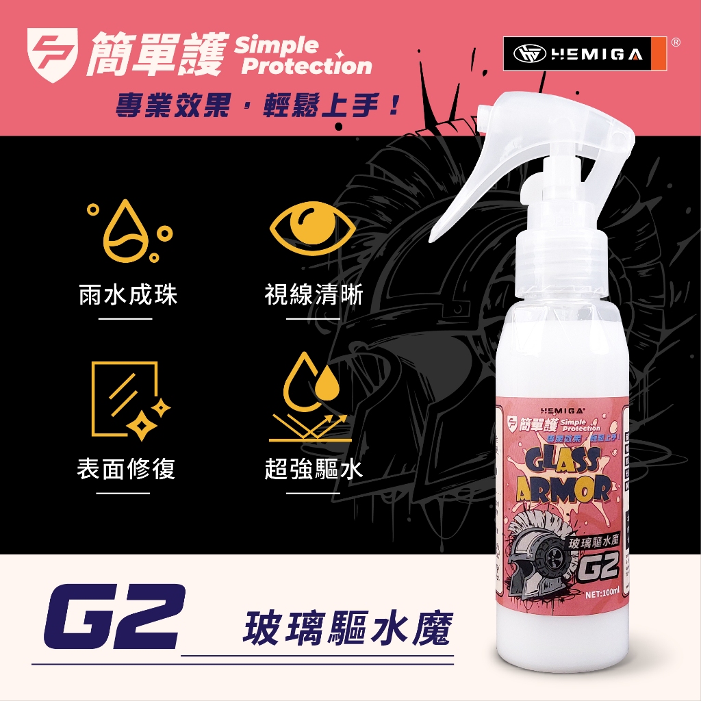 HEMIGA 簡單護 G2玻璃驅水魔 玻璃鍍膜 擋風玻璃 潑水劑 長效 免雨刷 車窗 玻璃驅水膜HEMIGA 簡單護 G2玻璃驅水魔 玻璃鍍膜 擋風玻璃 潑水劑 長效 免雨刷 車窗 玻璃驅水膜Glass Care & Water RepellentsPLAY3C創意生活館