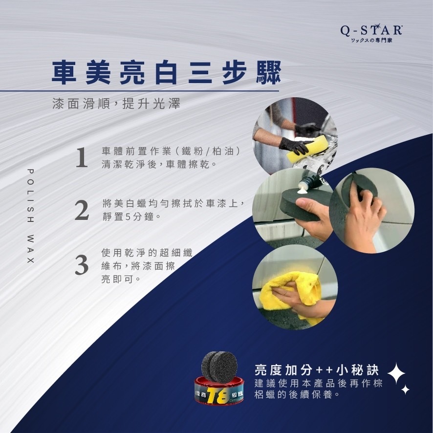 Q-STAR 汽車美容 天然棕櫚美白蠟250ml 淺色車專用 修補刮痕美白車漆Q-STAR 汽車美容 天然棕櫚美白蠟250ml 淺色車專用 修補刮痕美白車漆Wash & WaxesQ-STAR皇后之鑽有限公司 車蠟 棕梠蠟 汽車美容 洗車用品 鍍膜 洗車打蠟