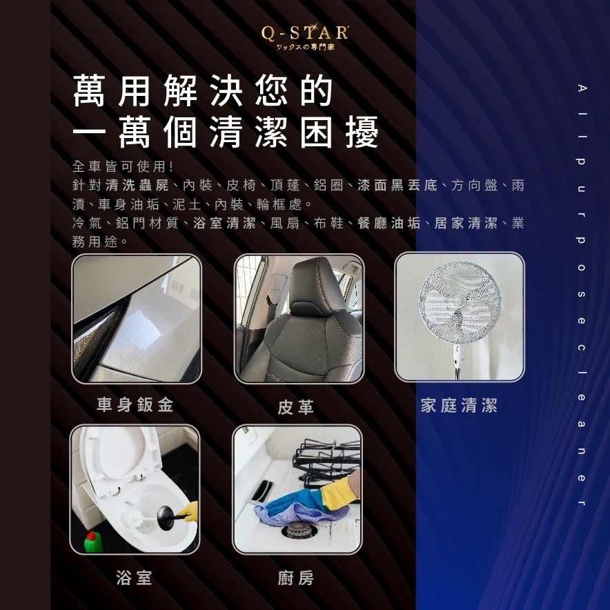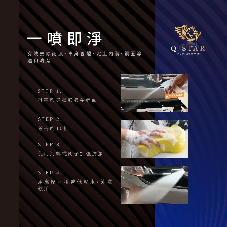Q-STAR 汽車美容 萬用清潔劑 洗車/居家清潔 車漆/內裝清潔 高濃縮清潔劑 天然成份 500ml容量1000ML|500ml|2公升|1加侖Wash & WaxesQ-STAR皇后之鑽有限公司 車蠟 棕梠蠟 汽車美容 洗車用品 鍍膜 洗車打蠟