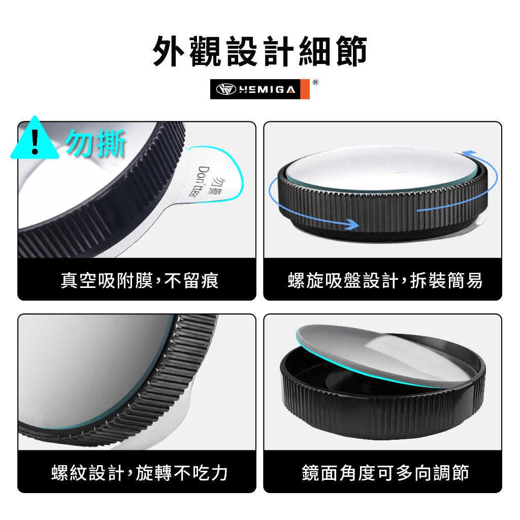 魔吸廣角鏡 盲點鏡 小圓鏡 2入組 廣角鏡 超牢固螺旋吸盤 免黏貼