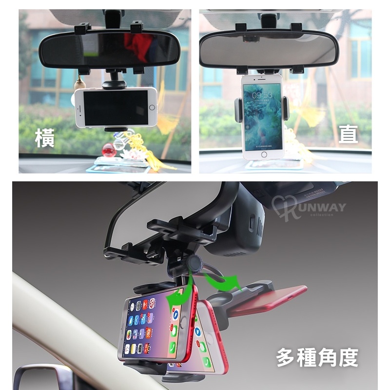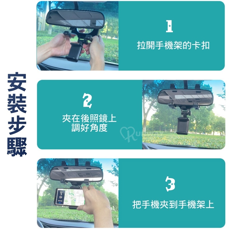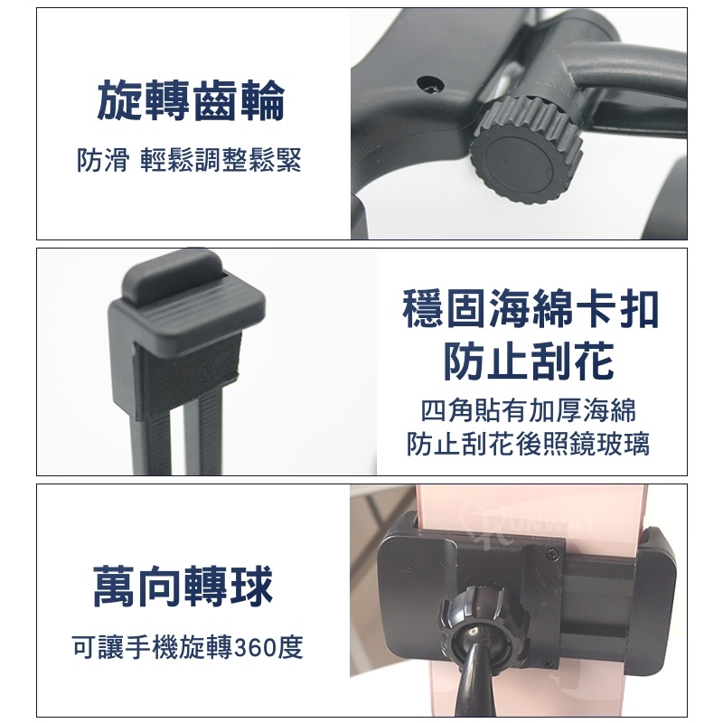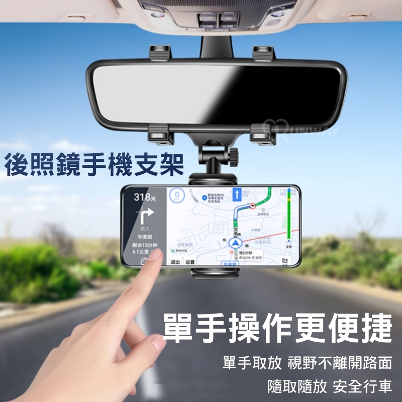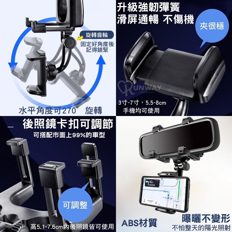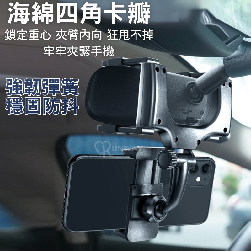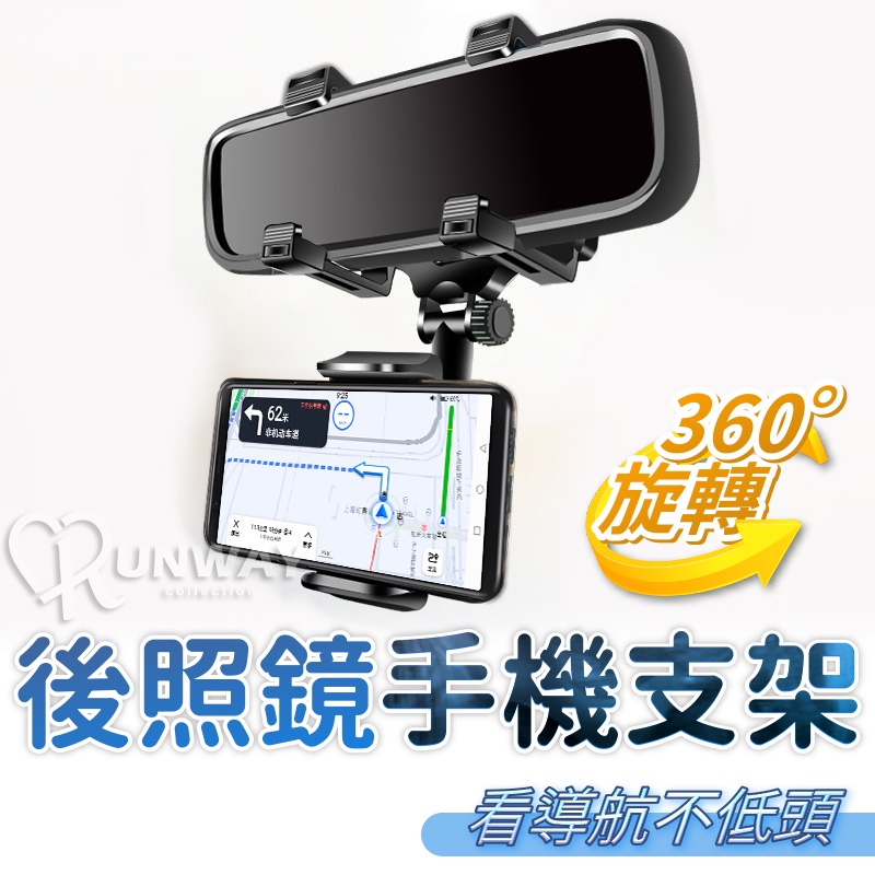 後照鏡支架 車用手機架 360度旋轉 可調整 照後鏡 手機支架 汽車導航支架 手機座 手機導航 車載支架 穩固不擋視線後照鏡支架-黑Phone HoldersRunway Collection