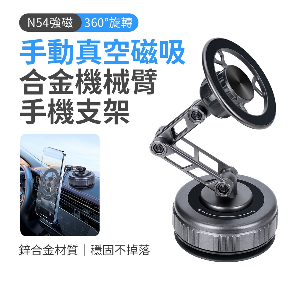 SHOWHAN 手動真空N54磁吸合金機械臂支架折疊旋轉手機支架G188S台灣現貨 隔日配 360度旋轉 真空支架灰色Phone HoldersSHOWHAN手機周邊生活用品旗艦店