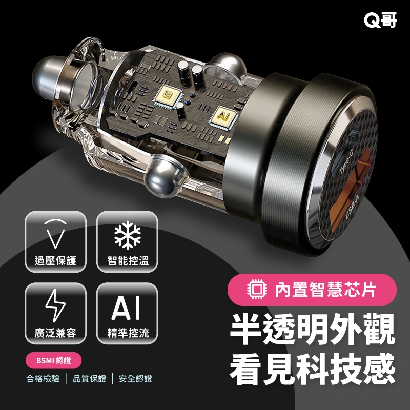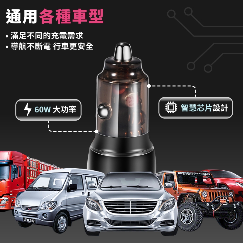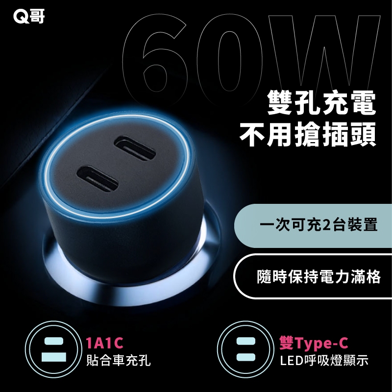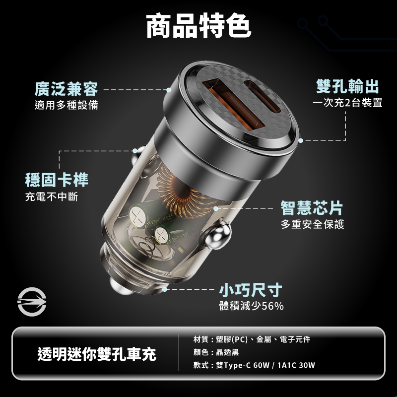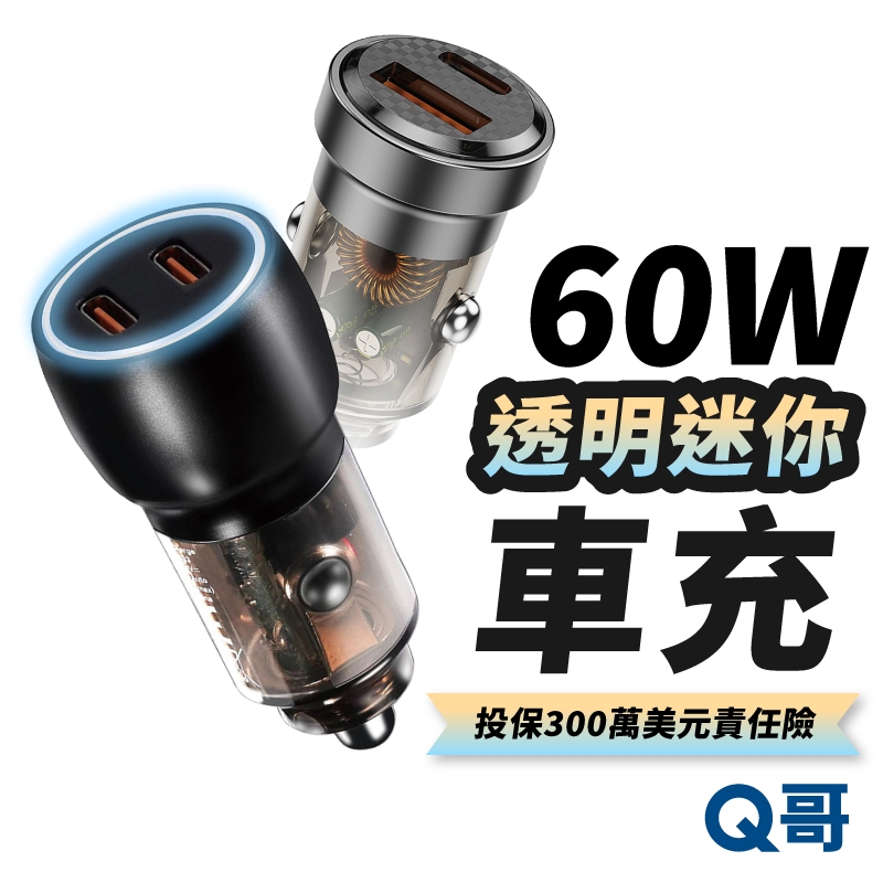 隔日到貨 Q哥 透明車充 PD快充 TypeC USBA 車用充電器 台灣製造 充電器 快充頭 車充 汽車充電器 點煙器60W TypeC+TypeC|30W TypeC+USBAUSB Chargers, FM & Bluetooth TransmittersQ哥 旗艦商城|最專業的保護貼手機配件