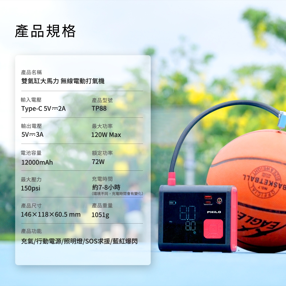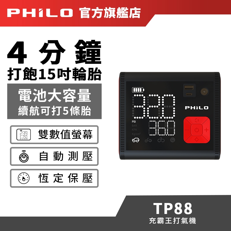 【Philo 飛樂】TP88 充霸王 雙氣缸大馬力 無線電動打氣機 胎壓偵測 車用打氣機 充氣機 自動充停 官方原廠直送【Philo 飛樂】TP88 充霸王 雙氣缸大馬力 無線電動打氣機 胎壓偵測 車用打氣機 充氣機 自動充停 官方原廠直送OthersPhilo飛樂|arlink雅聯【官方旗艦店】