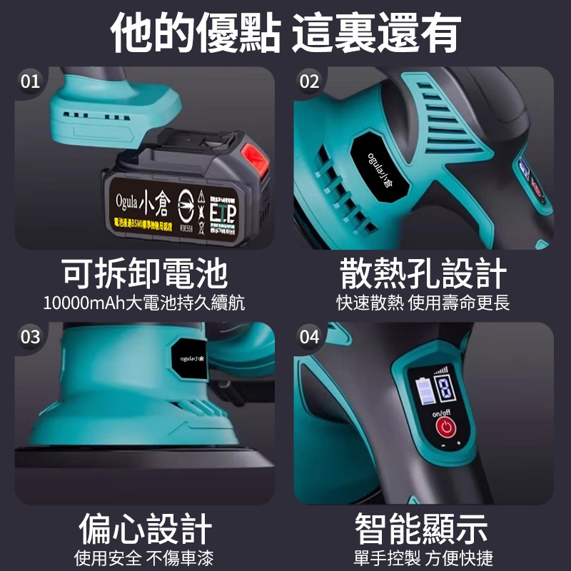 【Ogula小倉】打蠟機 拋光機 21V DA偏心機 汽車拋光機 8檔調速/帶電量顯示 震拋機 除油膜清潔蠟 DA鍍膜機21V震拋【裸機】8檔調速+數顯屏|21V震拋【五節一電】8檔調速/數顯屏|21V震拋【五節兩電】8檔調速/數顯屏|21V震拋【十節一電】8檔調速/數顯屏|21V震拋【十節兩電】8檔調速/數顯屏|21V震拋【十五節一電】8檔調速/數顯屏|21V震拋【十五節兩電】8檔調速/數顯屏|6寸拋光機【裸機】6檔調速/數顯屏|6寸拋光機【一電】6檔調速/數顯屏|6寸拋光機【兩電】6檔調速/數顯屏Polish, Coating & SealantsOgula小倉【官方旗艦店】
