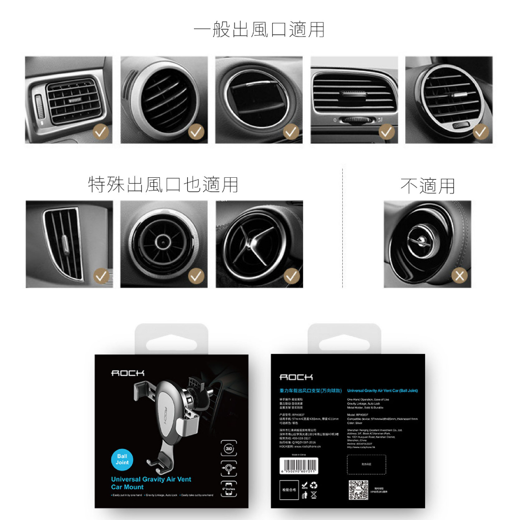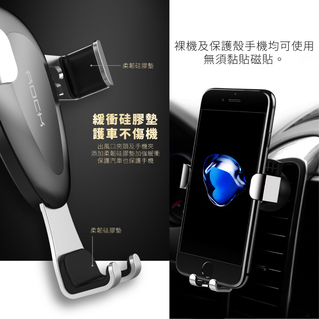 ROCK 車用重力版 手機支架 冷氣出風口手機支架 汽車用手機支架 手機導航支架 多功能支架 車用支架 汽車支架 E52銀色|灰色|金色|灰 福利品Phone HoldersQ哥 旗艦商城|最專業的保護貼手機配件