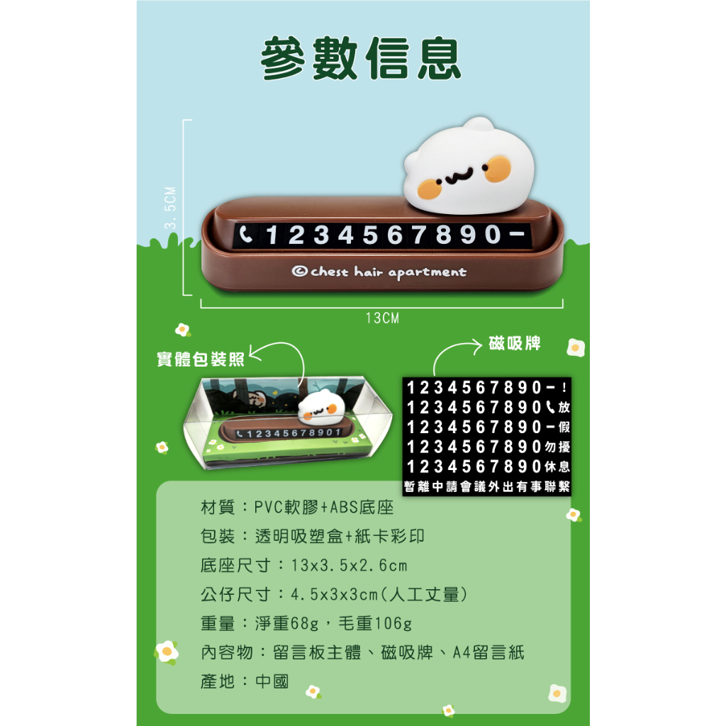 【禮物首選】正版授權 臨時停車號碼牌 留言板 (磁吸式/附留言紙) | LINE熱門貼圖 胸毛公寓