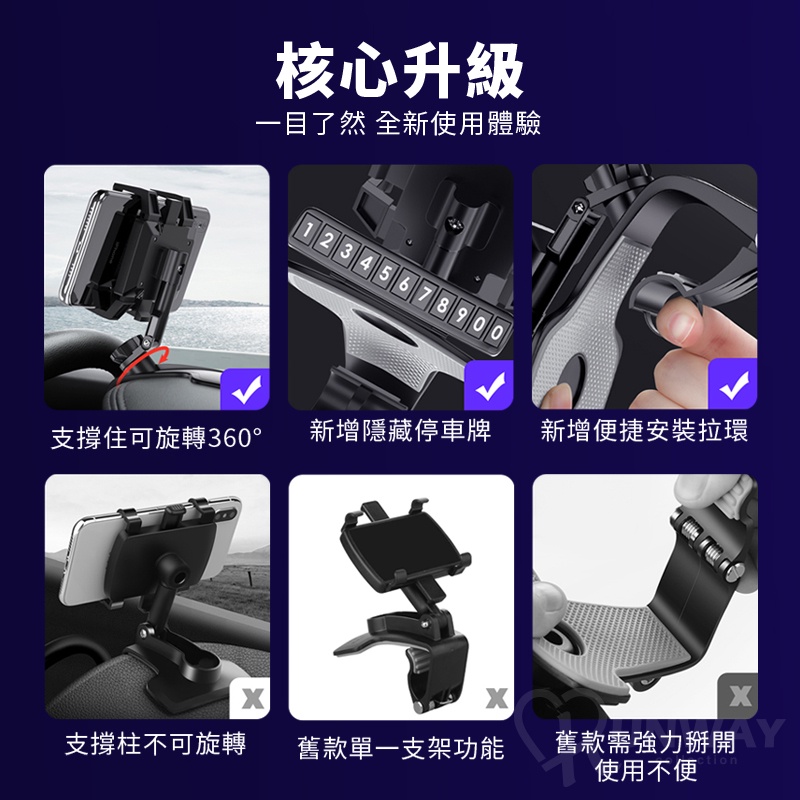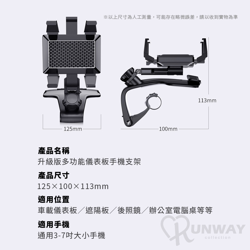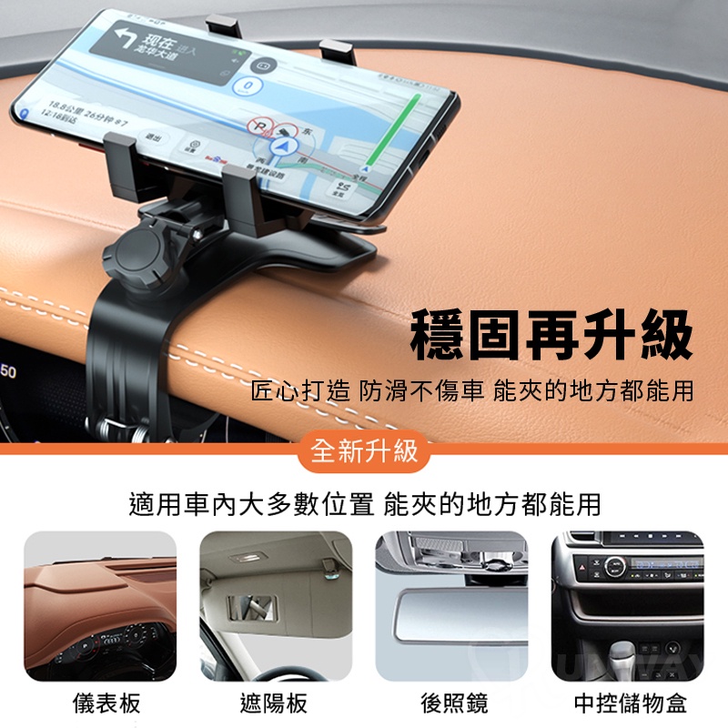 多功能車用手機支架 360度旋轉 儀錶板 遮陽板 照後鏡 一架多用 導航支架 汽車手機架 多用途支架升級版-黑,多功能車用手機支架|180度,多功能車用手機支架Phone HoldersRunway Collection