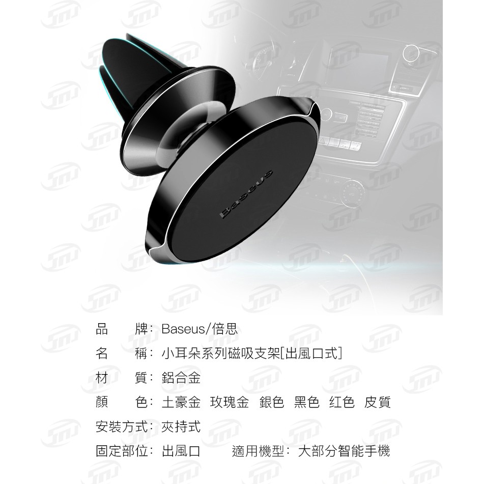 倍思 BASEUS 小耳朵 出風口磁吸車用支架 導航支架 車用手機架 汽車支架 冷氣口支架 真皮質感 多角度旋轉SUER-E01小耳朵出風口支架黑色Phone HoldersSMNU®十瑪官方商城