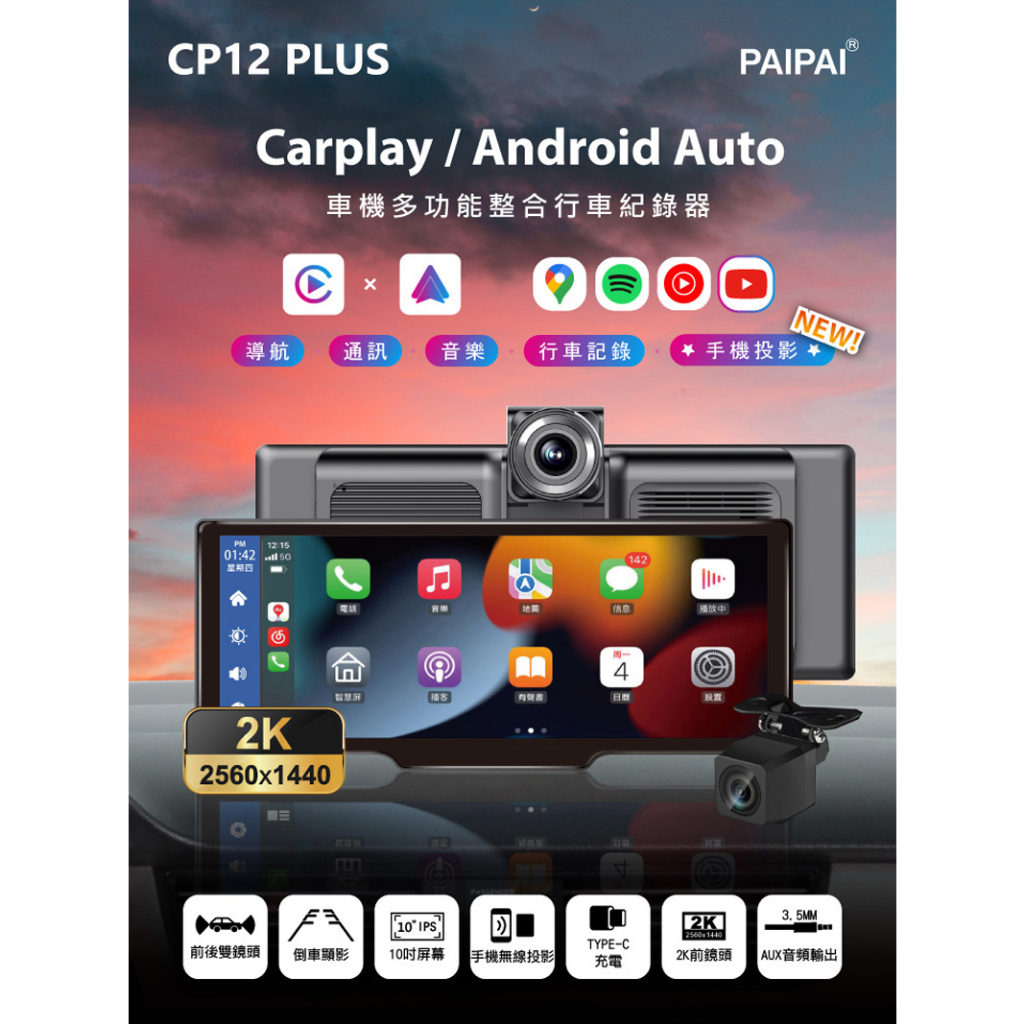 【PAIPAI拍拍】2K10吋WIFI多媒體CARPLAY雙鏡頭CP12 PLUS行車記錄器主機|主機+32G|主機+64G|主機+128GCamcorders & Parking CamerasPAIPAI行車紀錄器