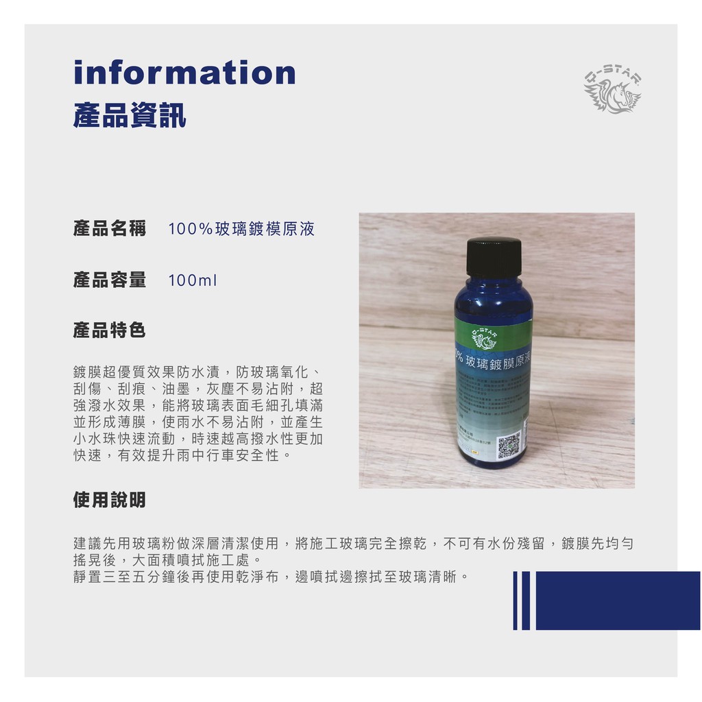 Q-STAR 汽車美容 100%汽車 玻璃鍍膜 撥水原液 防刮傷 刮痕 超強潑水效果 100ml 玻璃潑水劑玻璃鍍膜 100ML|玻璃鍍膜+粗目玻璃粉50克+鍍膜海綿*1Glass Care & Water RepellentsQ-STAR皇后之鑽有限公司 車蠟 棕梠蠟 汽車美容 洗車用品 鍍膜 洗車打蠟