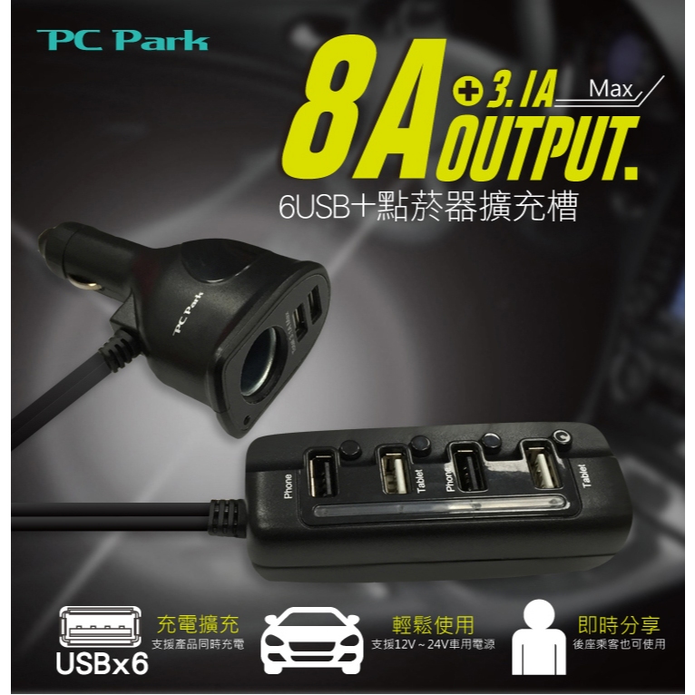 PC Park SV8A/黑/6USB+點菸器擴充槽 酷弟3CPC Park SV8A/黑/6USB+點菸器擴充槽 酷弟3CUSB Chargers, FM & Bluetooth TransmittersQD 酷弟3C