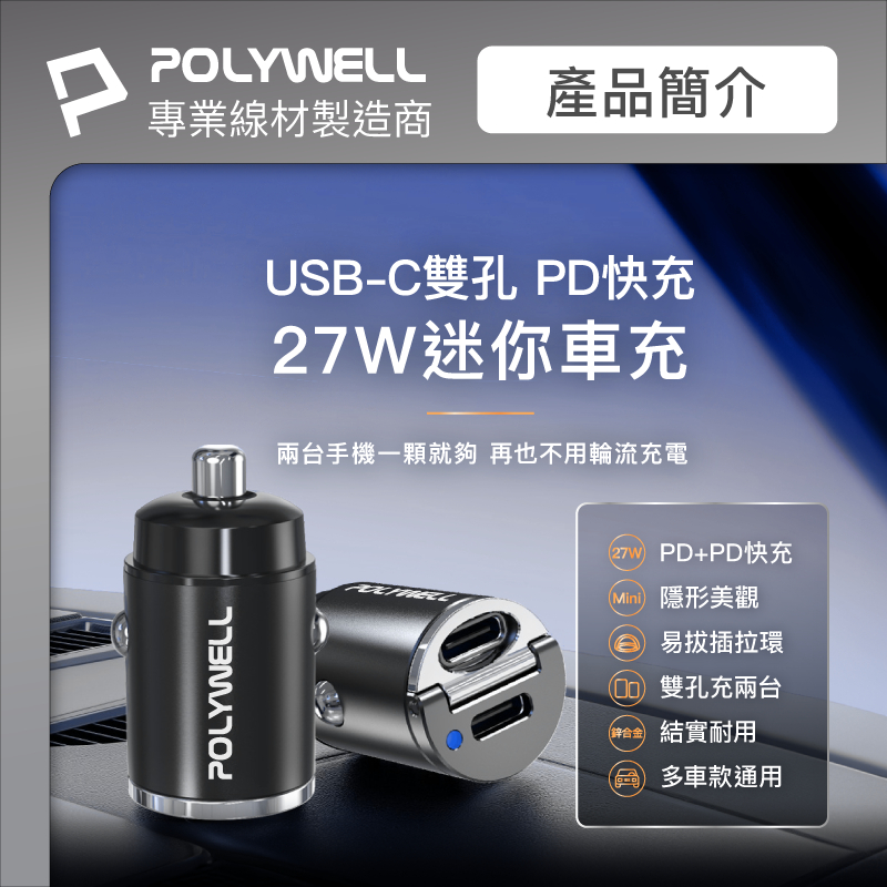 POLYWELL 27W雙USB-C車用快充組 迷你車用PD快充頭+LED PD快充編織線 寶利威爾 台灣現貨C/C車充+C/L LED編織快充線1米|C/C車充+C/L LED編織快充線2米|C/C車充+C/C LED編織快充線1米|C/C車充+C/C LED編織快充線2米USB Chargers, FM & Bluetooth TransmittersPOLYWELL寶利威爾官方旗艦店