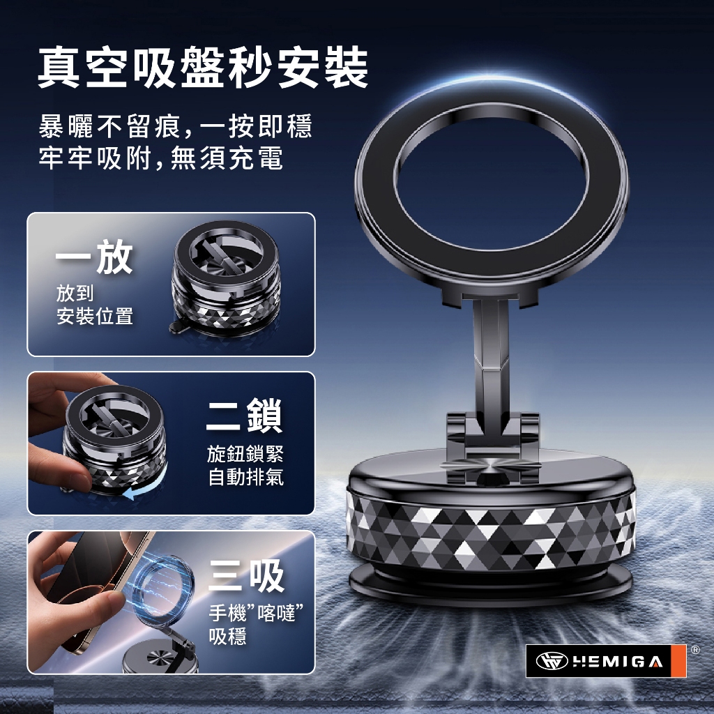 真空機械磁吸架 磁吸手機架 全合金 2025新款 手動免充電 菱格紋 磁吸 吸盤 H712BK真空機械磁吸架 磁吸手機架 全合金 2025新款 手動免充電 菱格紋 磁吸 吸盤 H712BKPhone HoldersPLAY3C創意生活館