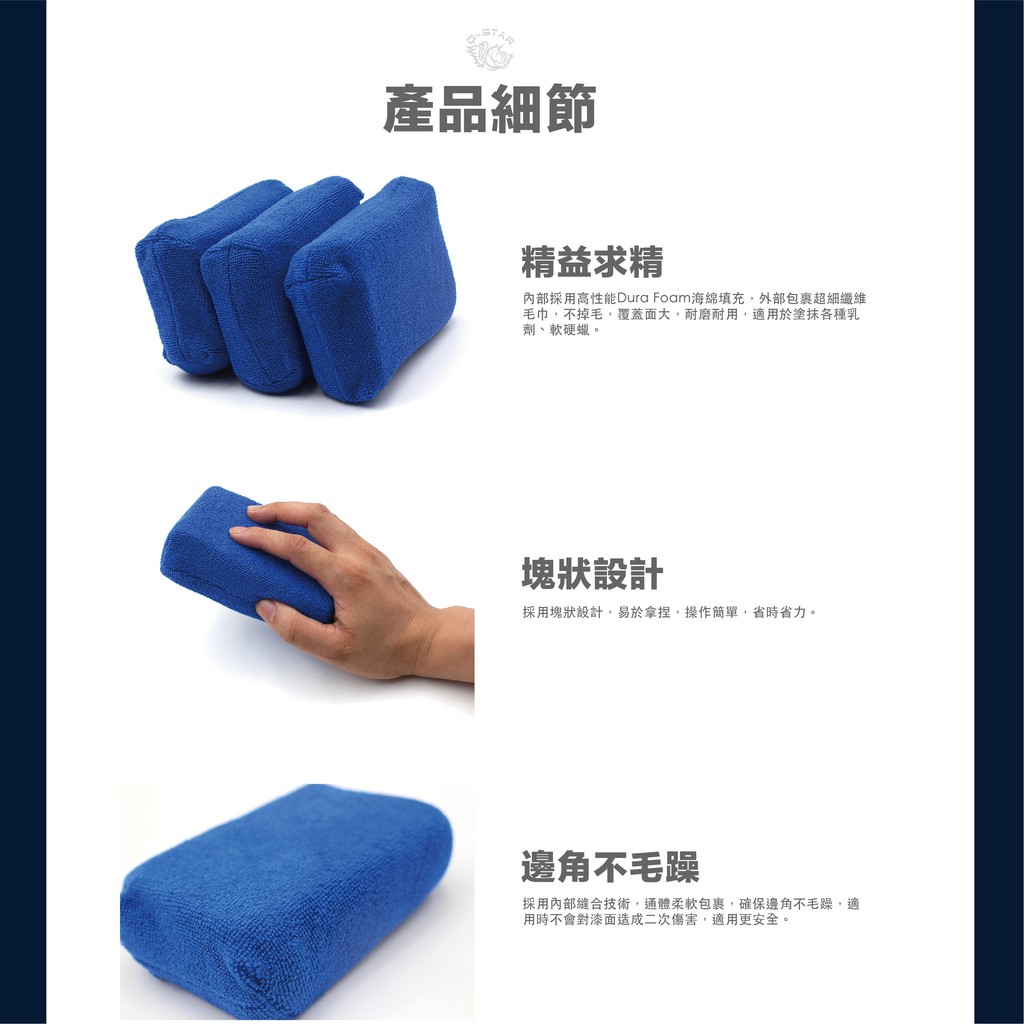 Q-STAR 汽車美容 超細纖維打蠟棉 上蠟纖維海綿 多功能萬用海綿Q-STAR 汽車美容 超細纖維打蠟棉 上蠟纖維海綿 多功能萬用海綿Wash & WaxesQ-STAR皇后之鑽有限公司 車蠟 棕梠蠟 汽車美容 洗車用品 鍍膜 洗車打蠟