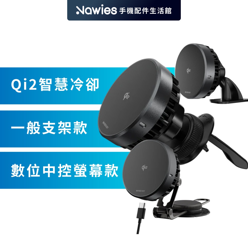 【MAGEASY】MagMount Qi2 智慧冷卻車用手機支架 冷卻降溫 MagSafe 車架 磁吸車充 無線車充一般支架款|數位中控螢幕款)Phone HoldersNawies 手機配件 | 代理 倍思 / Lisen / amuok