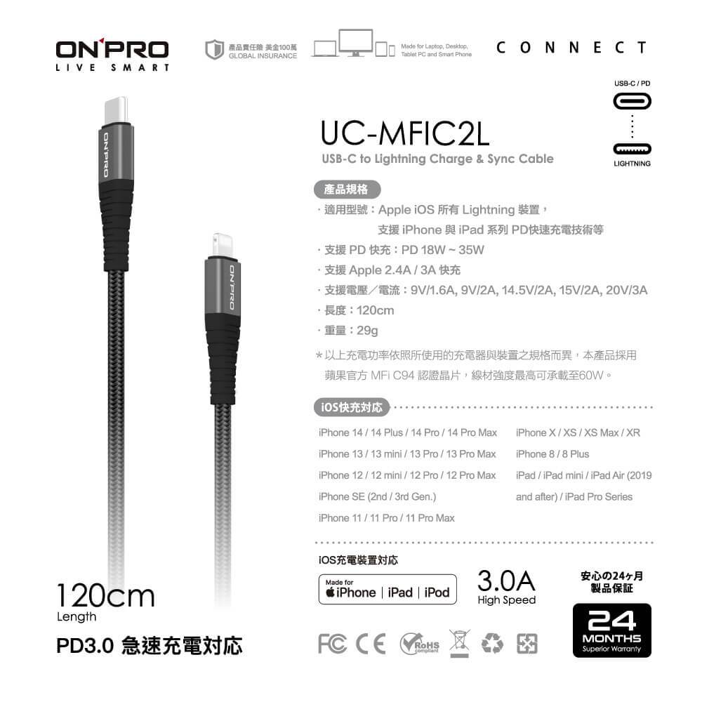 ONPRO GT-PD78W 3孔快充車充+UC-MFIC2L120線【iPhone車充+120公分線 車用快充組合】78W雙模車充+iPhone線1.2MUSB Chargers, FM & Bluetooth TransmittersONPRO超急速充電 官方旗艦館