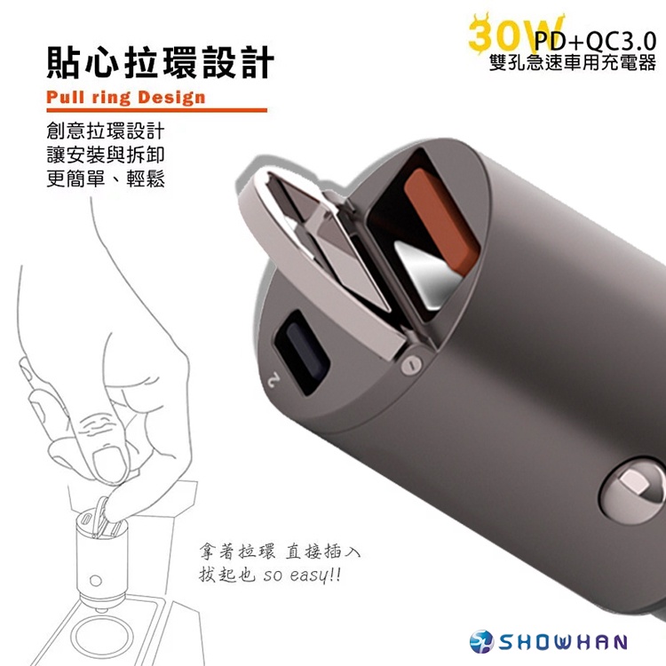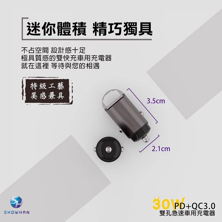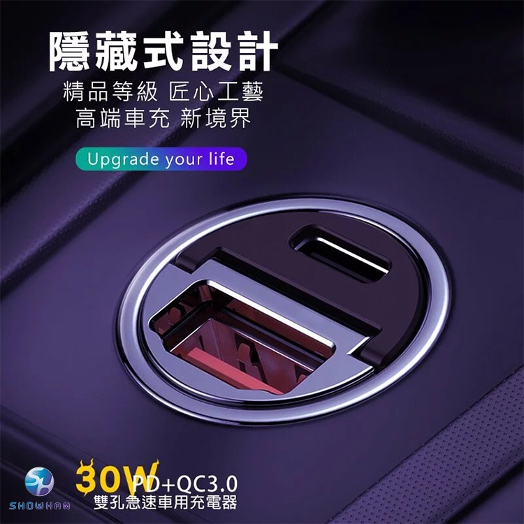 SHOWHAN 30W PD+QC3.0 雙孔車用充電器 隱形車充 USB+Type-C雙孔汽車充電器 BSMI認證30W車充|30W 車充+USBto蘋果線1M|30W 車充+USBto蘋果線2M|30W 車充+USBtoTC1M|30W 車充+雙Type-C線1MUSB Chargers, FM & Bluetooth TransmittersSHOWHAN手機周邊生活用品旗艦店