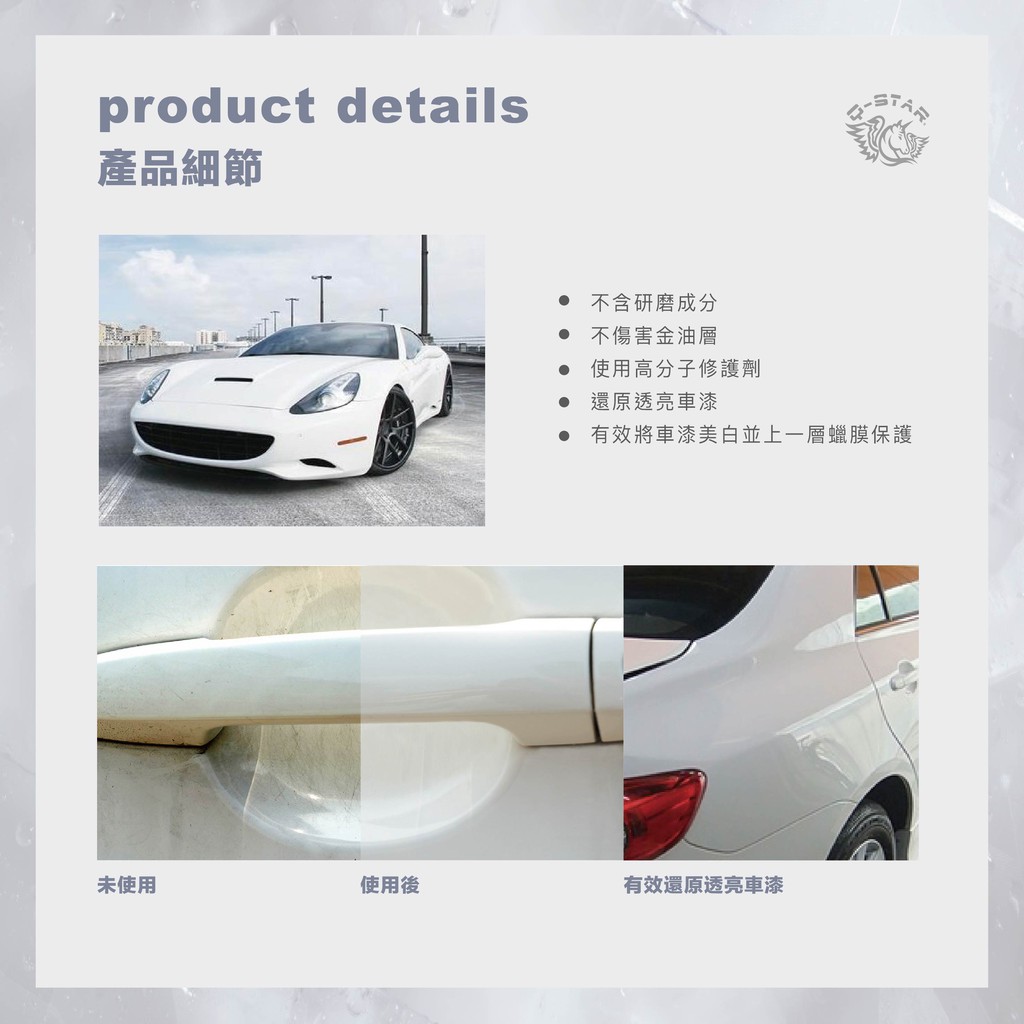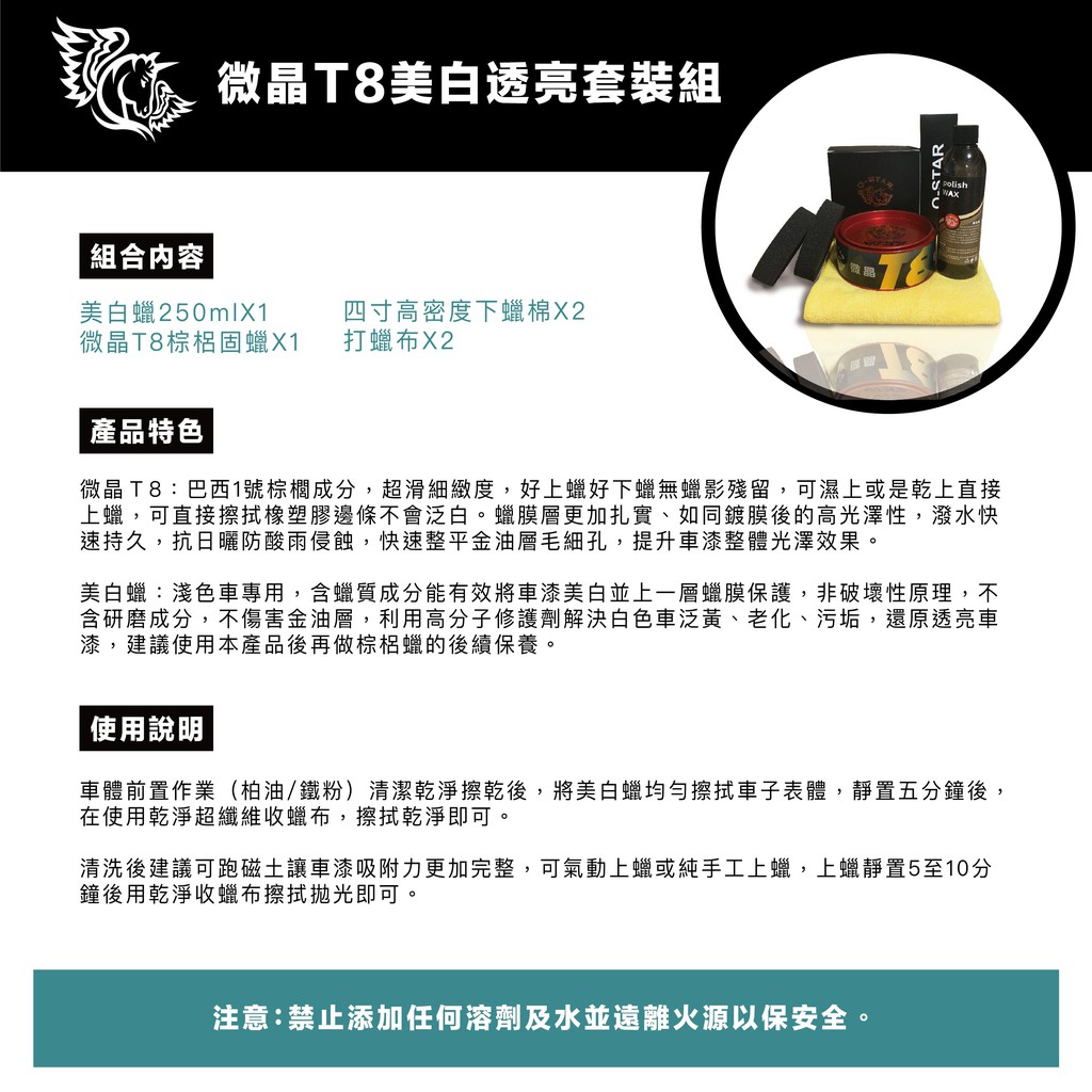 Q-STAR 汽車蠟/汽車臘(白色車限定) 汽車美白透亮套組 美白蠟+微晶T8棕櫚固蠟Q-STAR 汽車蠟/汽車臘(白色車限定) 汽車美白透亮套組 美白蠟+微晶T8棕櫚固蠟Wash & WaxesQ-STAR皇后之鑽有限公司 車蠟 棕梠蠟 汽車美容 洗車用品 鍍膜 洗車打蠟