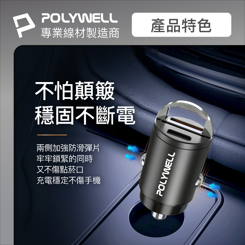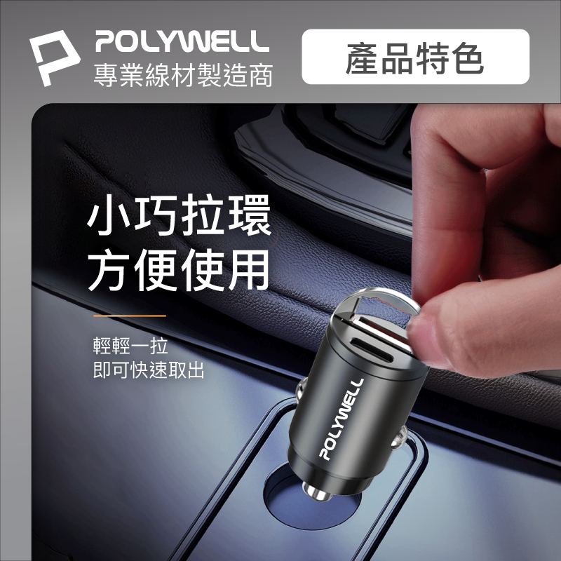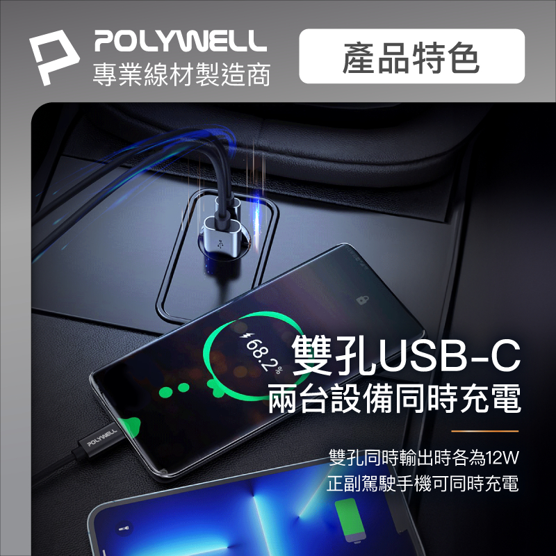 POLYWELL 雙Type-C 27W迷你車用充電器 PD快充 BSMI認證 隱藏式設計 帶LED 寶利威爾 台灣現貨雙Type-C 27W迷你車用充電器USB Chargers, FM & Bluetooth TransmittersPOLYWELL寶利威爾官方旗艦店