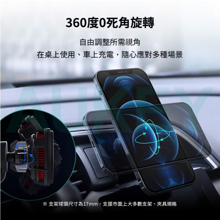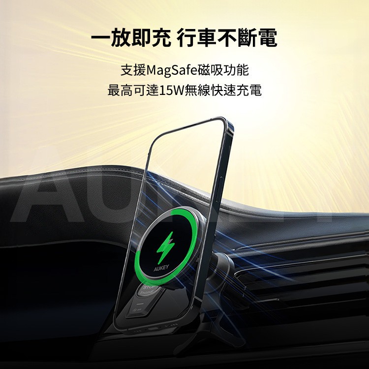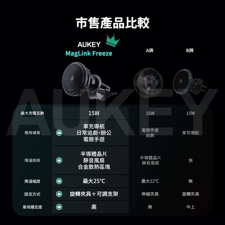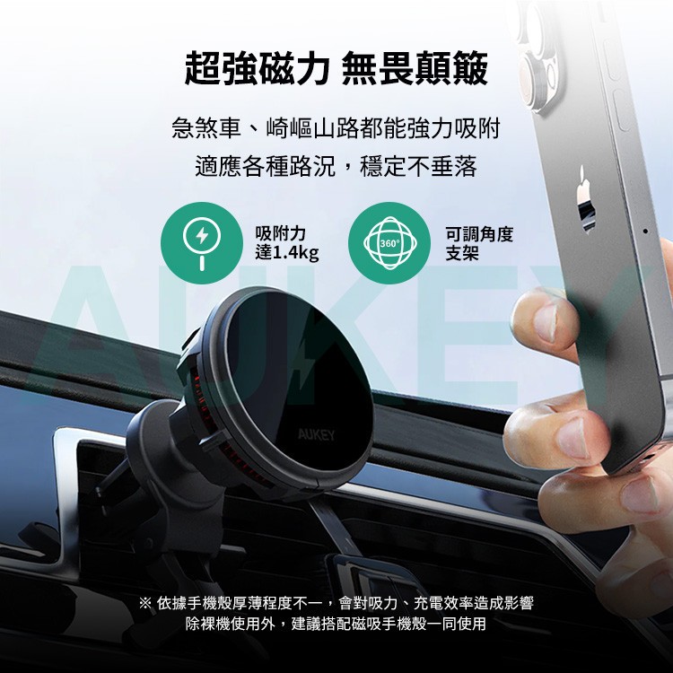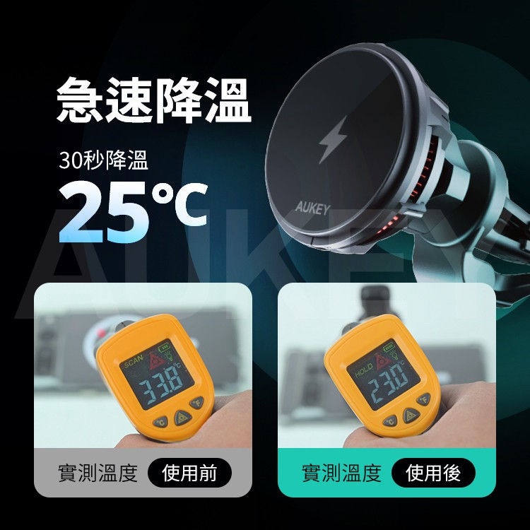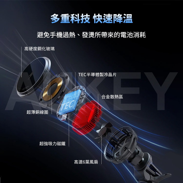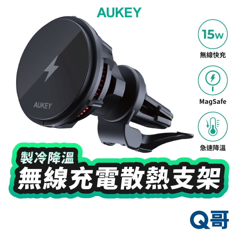 Aukey 無線充電手機散熱支架 MagSafe 製冷 車用支架 磁吸支架 車載 無線 快充 手機支架 AKY003黑色Phone HoldersQ哥 旗艦商城|最專業的保護貼手機配件