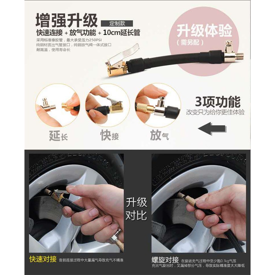 打氣機延長頭 夾式 可放氣 [胎王] 米其林可用 12266 小米打氣機可用 打氣機 延伸管 充氣機 打氣泵 充氣泵60公分|100公分|10公分|20公分|30公分Tires & AccessoriesT.K.胎王商城旗艦店
