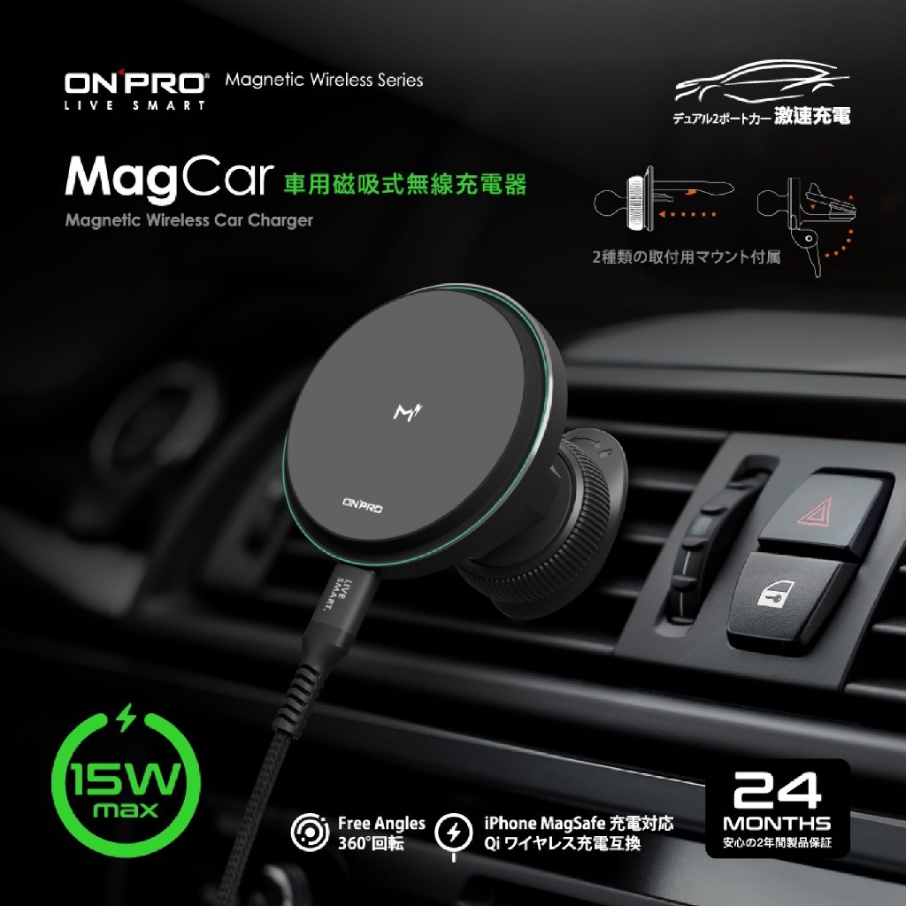 ONPRO MagCar 15W 車用磁吸充電車架 車用充電器 MagSafe 車充 充電盤 充電架 手機支架 ON42黑USB Chargers, FM & Bluetooth TransmittersQ哥 旗艦商城|最專業的保護貼手機配件