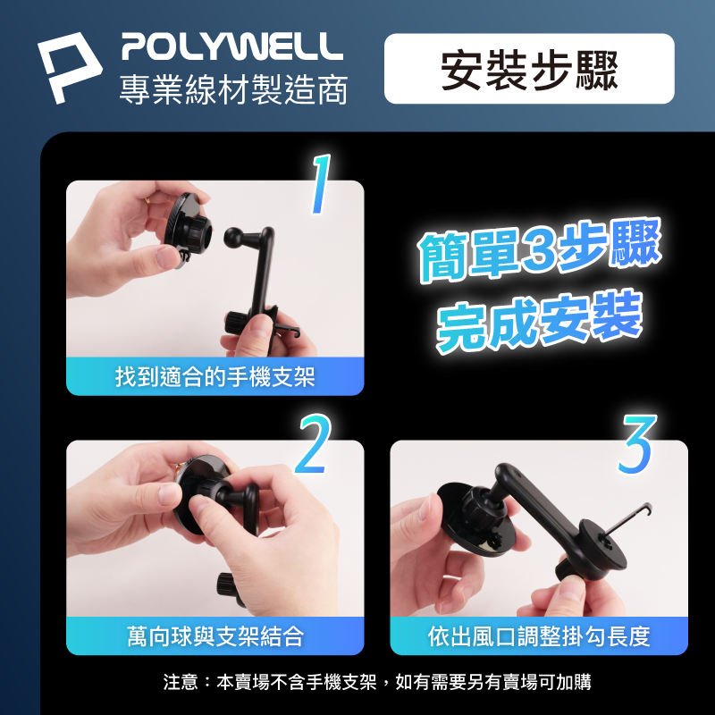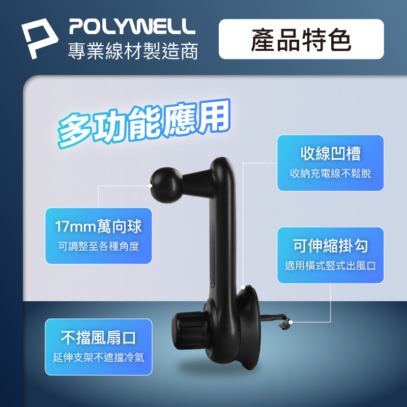 POLYWELL 通用型車用手機支架配件 延長支架 不擋出風口 伸縮掛勾 17mm萬向球 寶利威爾 台灣現貨車用支架配件 延長款Phone HoldersPOLYWELL寶利威爾官方旗艦店