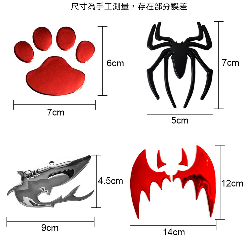 3D金屬 汽車貼紙 車用貼紙 車用裝飾貼鯊魚(金色)|狗掌 (銀色)|狗掌 (紅色)|狗掌 (黑色)|狗掌 (金色)|蜘蛛 (金色)|蜘蛛 (銀色)|壁虎漫步 (金色)|壁虎漫步 (銀色)|睫毛|老鷹 (金色)|老鷹 (銀色)|蝙蝠 (銀色)|蝙蝠 (紅色)|蝙蝠 (黑色)|蝙蝠 (金色)|眼鏡蛇 (金色)|眼鏡蛇 (銀色)|鯊魚(銀色)|蠍子 (金色)|蠍子 (銀色)|熊腳 (銀色)|K貓 (銀色)|K貓 (紅色)|K貓 (金色)|火焰 (銀色)|火焰 (紅色)|火焰 (黑色)|火焰 (金色)|Q版天使 (銀色)|Q版天使 (紅色)|Q版天使 (金色)|天使翅膀 (紅色)|天使翅膀 (黑色)|天使翅膀 (金色)|天使翅膀 (銀色)|蝙蝠俠 (金色)|蝙蝠俠 (銀色)|蝙蝠俠 (黑色)Stickers, Logos & EmblemsT.K.胎王商城旗艦店